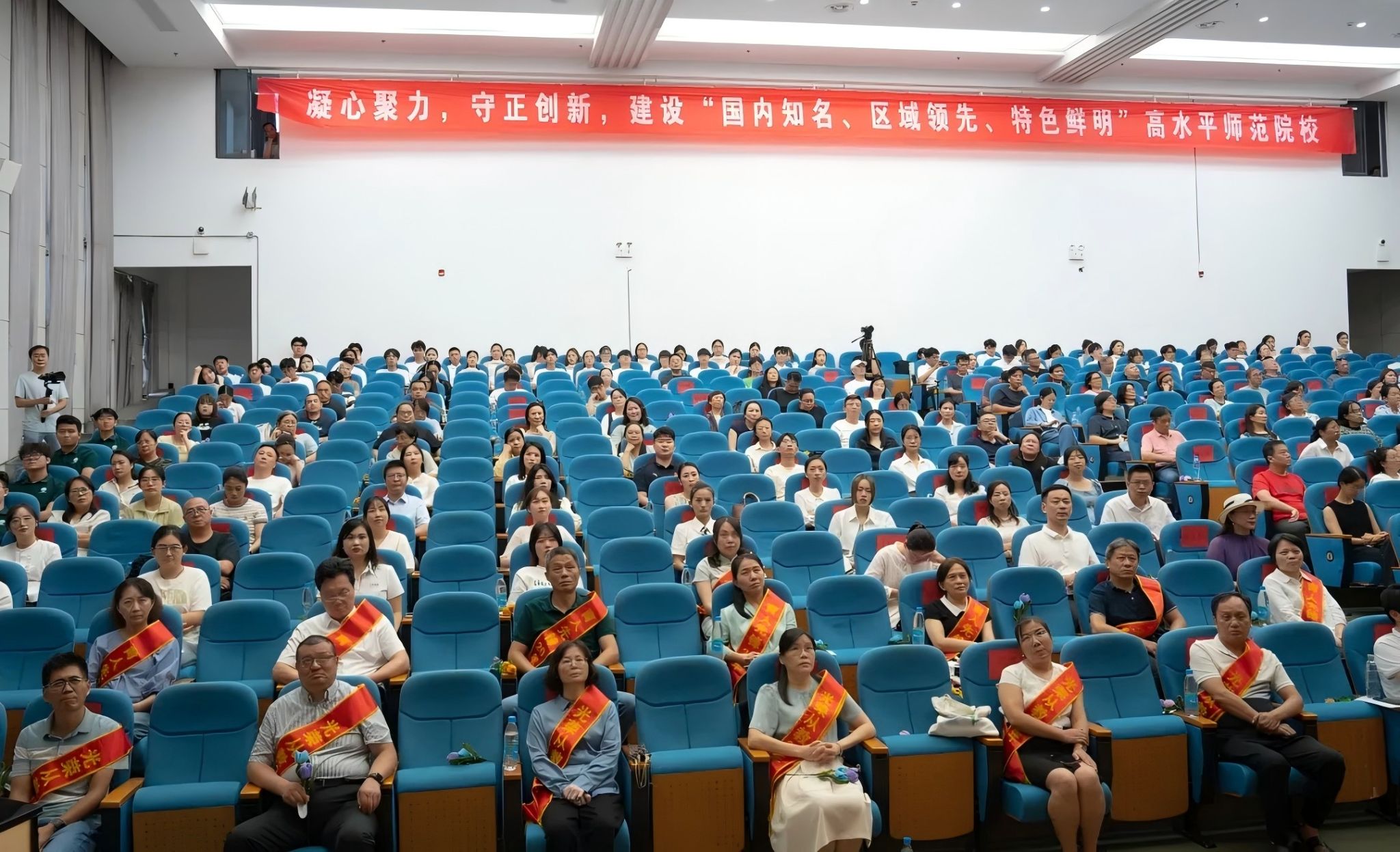 我校党委书记陈琳寄语全体教师:要做“有信仰”的教育者,牢记“为党育人、为国育才”的使命;要做“有本领”的教育者,勤学新知、勇挑改革重担;要做“有温度”的教育者,以爱心、耐心、责任心呵护学生成长;要做“有担当”的教育者,直面难题投身教育创新,共同为建设为建设“国内知名、区域领先、特色鲜明”的高水平师范院校奋斗。