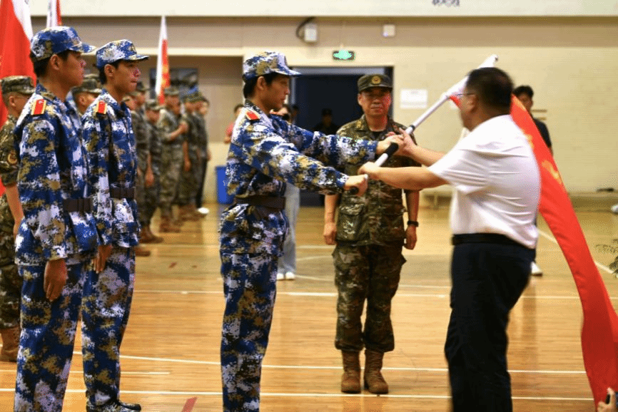 大会现场举行了《无锡师范高等专科学校学生手册》颁发仪式,由副校长赵刘向来自五个学院的新生代表颁发了学生手册,象征着新生正式迈入大学生活。副校长邵小明为军训团授旗,承训部队代表接过团旗,全场响起热烈掌声。驻训教官代表表示,全体教官将严格按照训练大纲,科学施训、文明带兵,与师生共同完成军训任务,培养学生的军事素养和爱国精神。