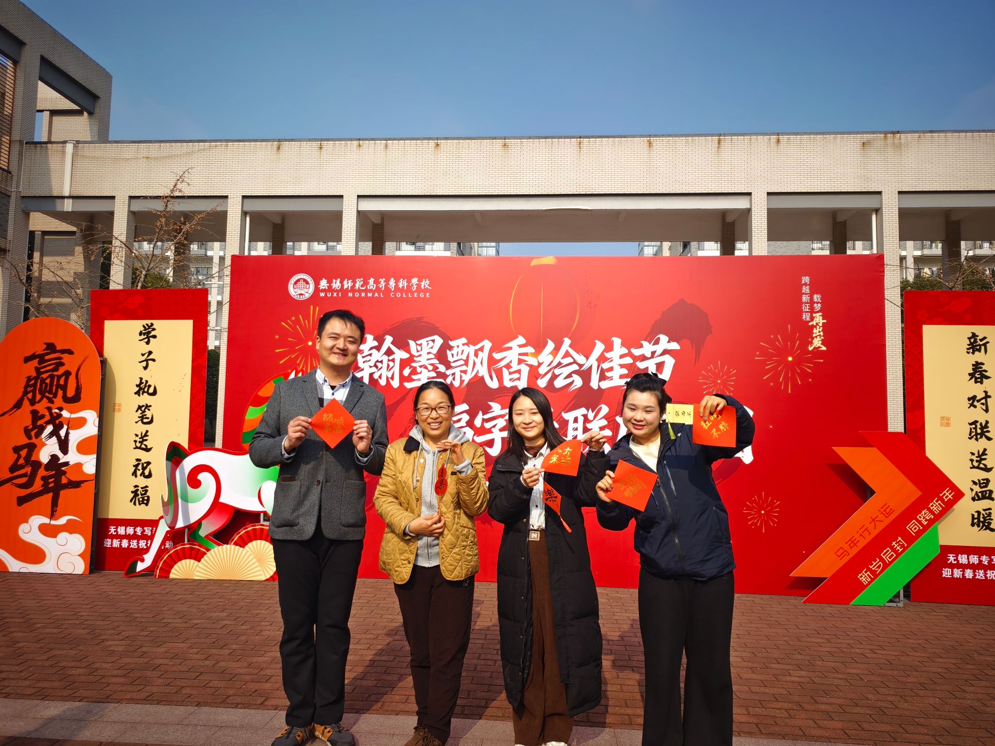 12月30日,无锡师范高等专科学校“闻鸡起舞”广场上,一派红火喜庆、墨香沁人的景象。一年一度的“写福送春联”迎新活动如约而至,师生们齐聚于此,在书香与墨韵的交融中,共同迎接新年的到来。