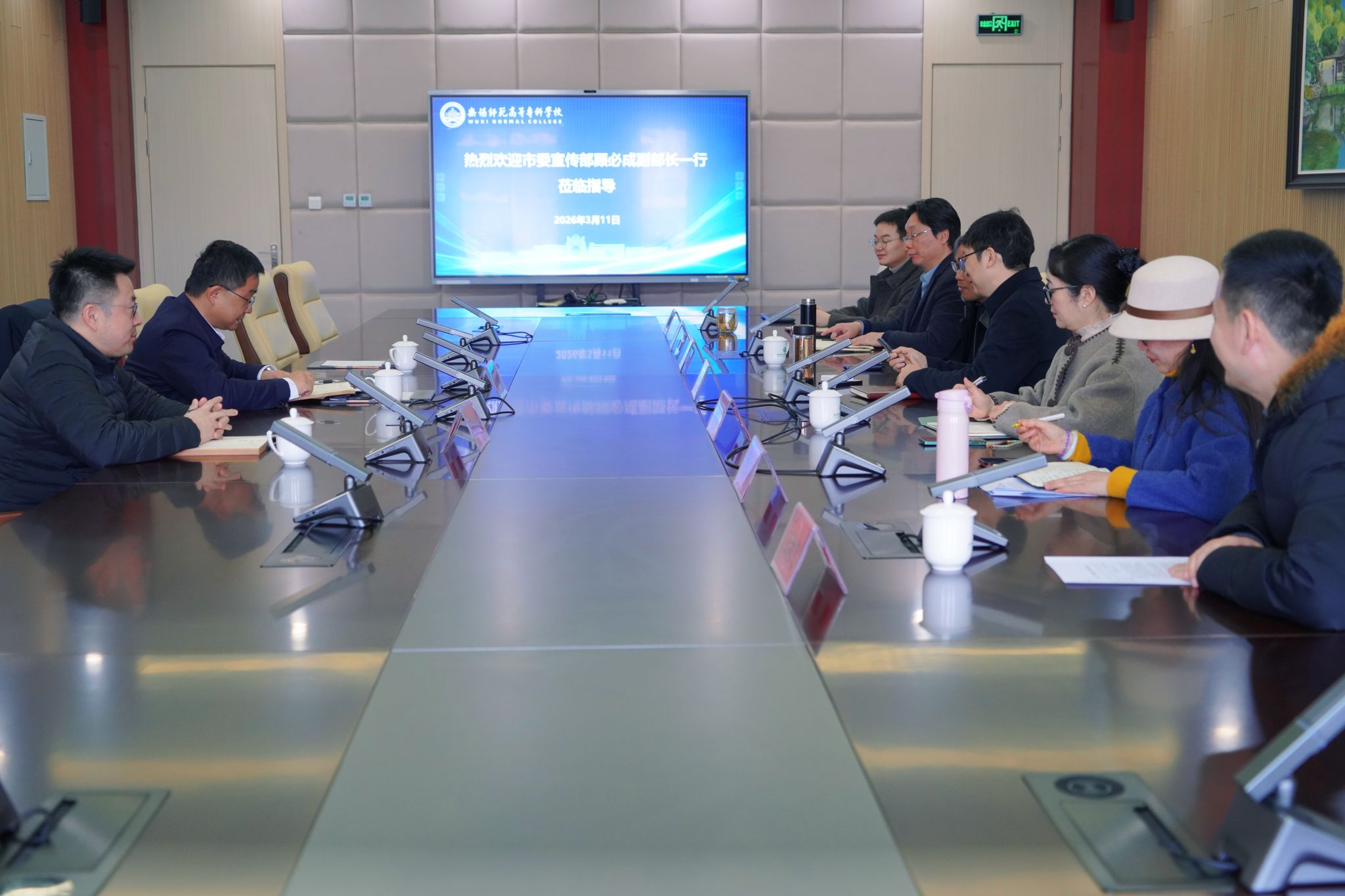3 月 11 日,无锡市委宣传部副部长顾必成赴无锡师范高等专科学校走访调研,无锡师专党委书记陈琳陪同开展调研座谈、校史馆参观等活动。